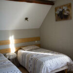 Deux lits simples, salle d’eau et wc privatifs.